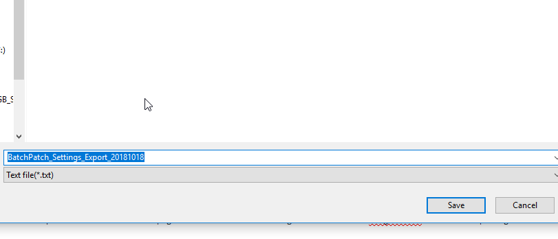 - You will be prompted to choose a location on disk to save the export file. Go ahead and save it. You can give it any name that you want. You can see in the screenshot below that I’ve titled my export file ‘BatchPatch_Settings_Export_2018-10-18’.
