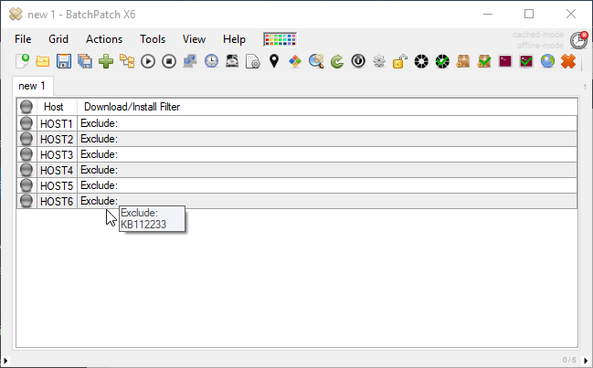 In BatchPatch we can create a row template on a per-grid basis, and then in the row template we can store the Windows Update filters / exclusions, so that any time a new row/host is added to a grid, it will automatically receive any values that were pre-configured in the row template. This means that the new hosts/rows can automatically receive the same Windows Update filters / exclusions that exist for other hosts in the same grid.